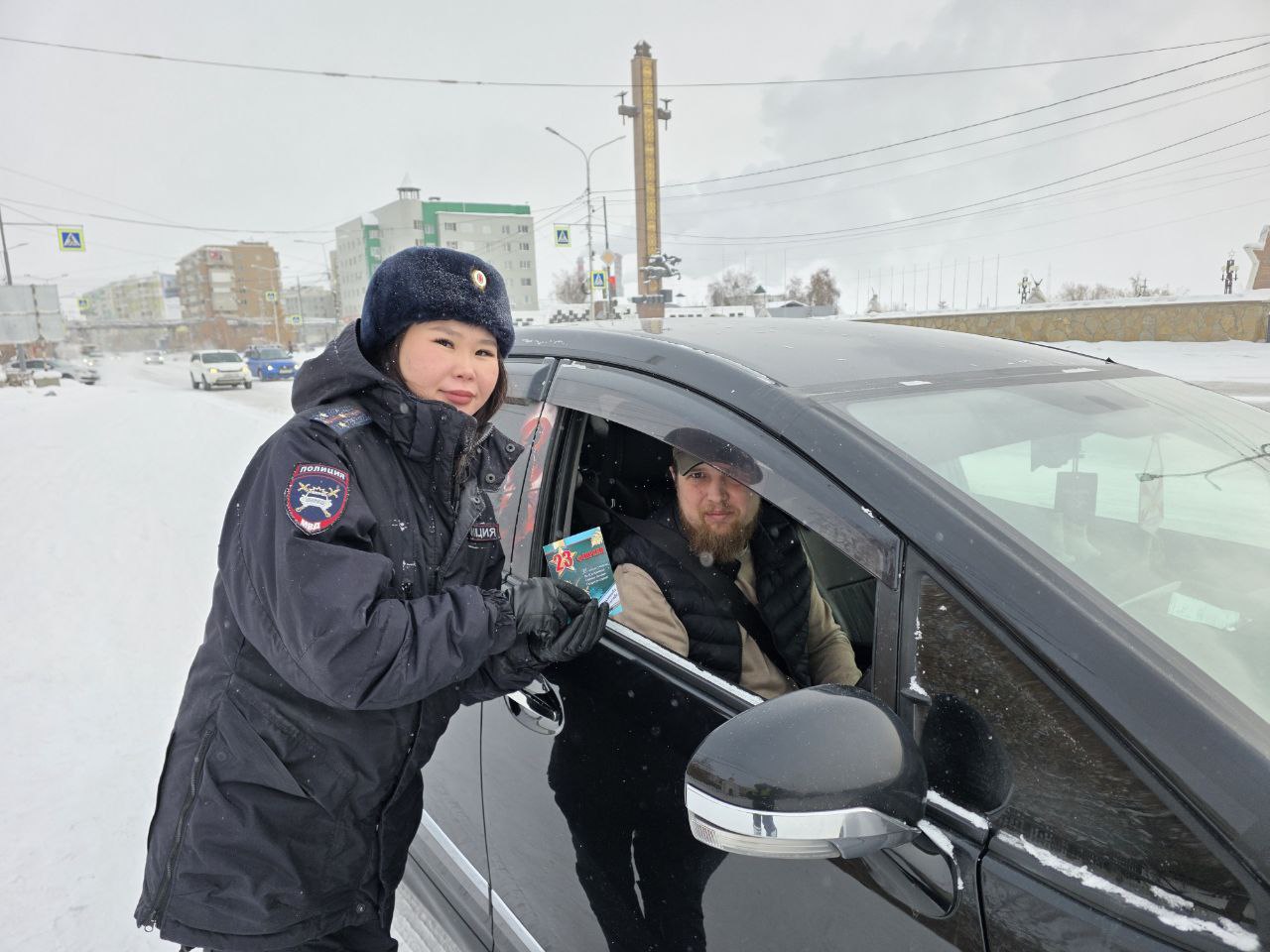Сотрудницы Госавтоинспекции поздравили защитников Отечества на дорогах!
