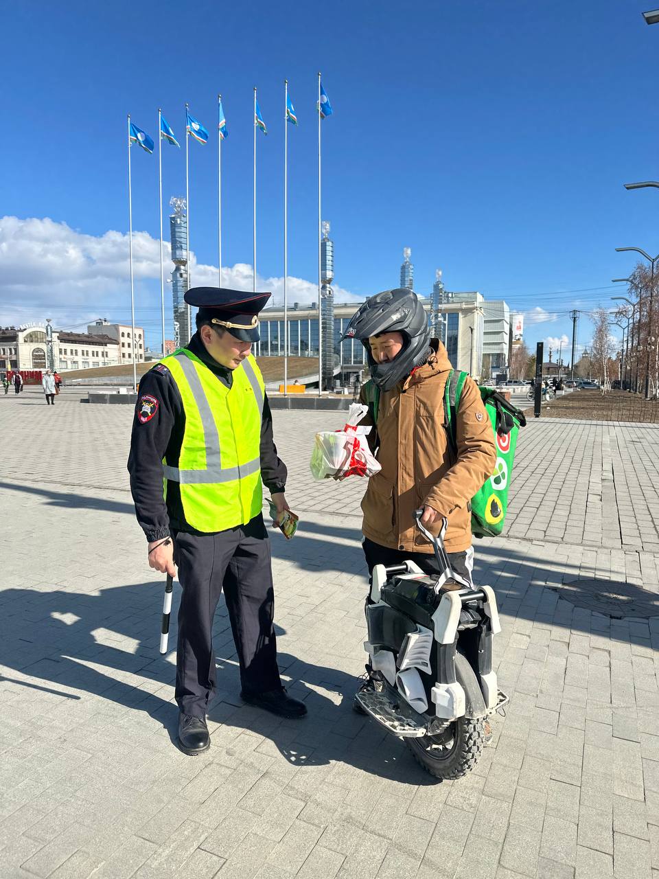 Сотрудники Госавтоинспекции организовали профилактическое мероприятие, направленное на повышение безопасности дорожного движения среди водителей средств индивидуальной мобильности (СИМ) — электросамокатов, гироскутеров, моноколёс и аналогичных устройств.