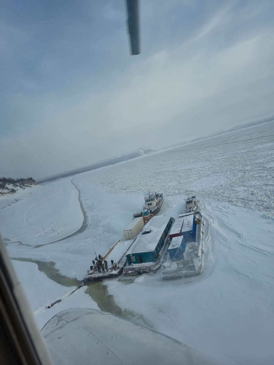 В ЕДДС Булунского района 23 октября поступила информация о том, что на территории Булунского улуса, в районе села Кюсюр при следовании по маршруту п.Быковский - Якутск по реке Лена во льдах встали два судна с экипажем кораблей. Со слов главы Кюсюрского наслега, причина остановки судов неизвестна, так как вода не замерзла.