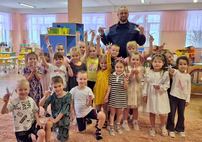 В дни проведения акции старший следователь следственного отдела по городу Якутску Айнура Керимова провела практическое занятие по изготовлению бумажных журавликов в дошкольной группе «Тайны бумажного листа» Дворца детского творчества им. Ф.И. Авдеевой.