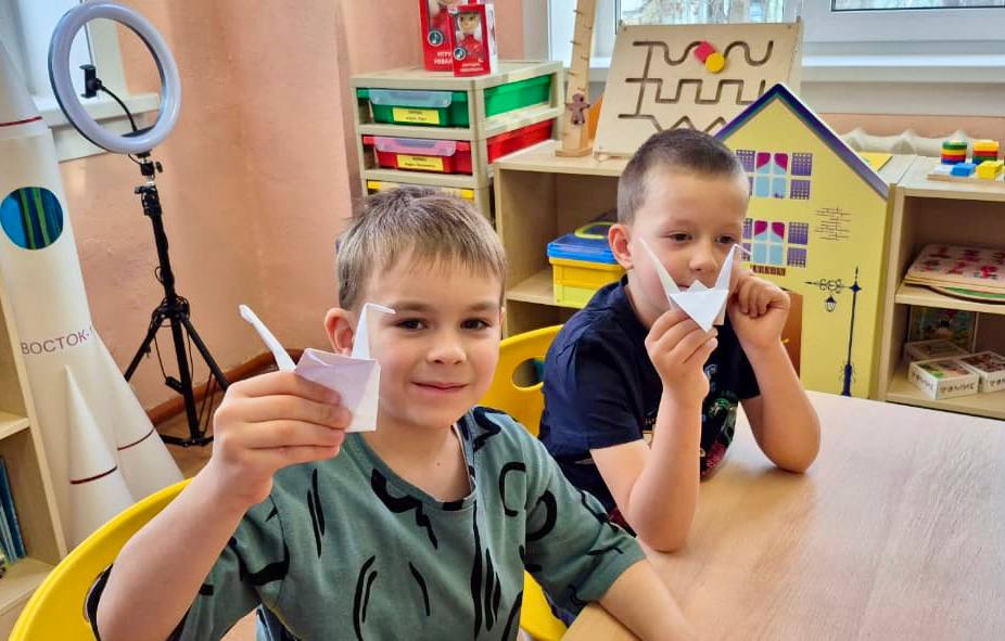 Маленькие мастера и мастерицы с увлечением наблюдали за техникой изготовления символа памяти и мира, а после самостоятельно создали своих бумажных птиц.