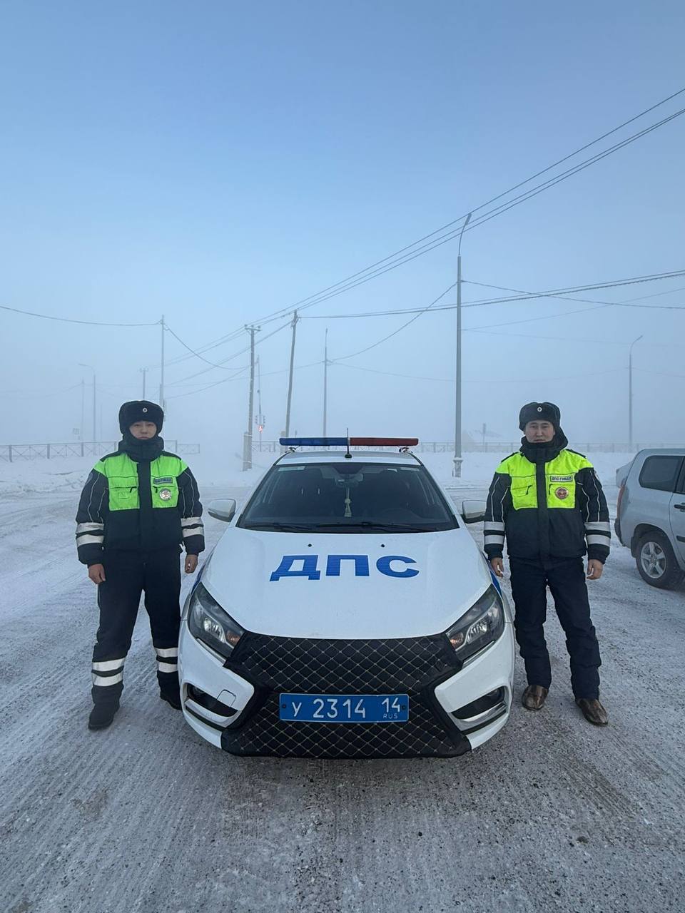 Инспектор ДПС старший лейтенант полиции Конон Оленов и стажёр Георгий Стручков остановили иномарку и выяснили у водителя, направлявшегося с тремя пассажирами из Мирнинского района в Якутск, что из-за сильных морозов в машине возникла проблема с подачей топлива. В ту ночь температура опустилась до минус 47 градусов.