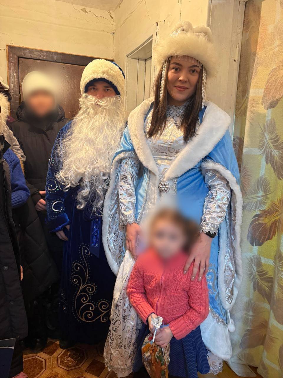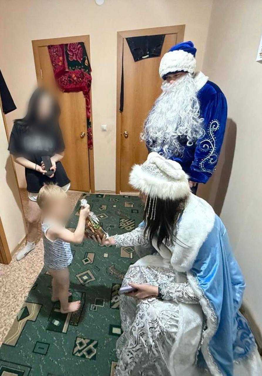 Старший полицейский конвоя сержант полиции Александр Рындя в образе волшебника Деда Мороза вместе со своей коллегой, инспектором по делам несовершеннолетних лейтенантом полиции Полиной Климовой в роли Снегурочки за несколько дней посетили 22 семьи, находящихся в трудной жизненной ситуации.