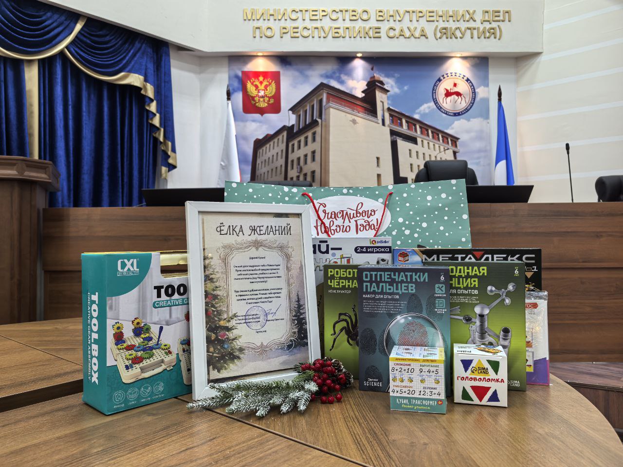 В преддверии волшебного новогоднего праздника министр внутренних дел по Республике Саха (Якутия) генерал-лейтенант полиции Владимир Прокопенко принял участие во Всероссийской акции «Ёлка желаний». В рамках этого доброго проекта он исполнил заветную мечту шестилетнего Арияна Охлопкова из Якутска.