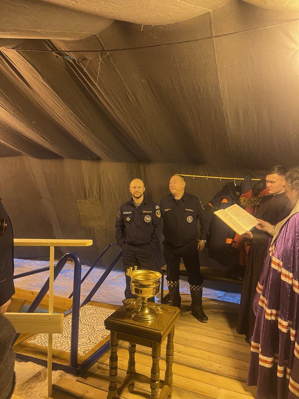 Сегодня, 18 января, в Якутске, водолазы Службы спасения Якутии дежурят в палатке, где установлена купель.