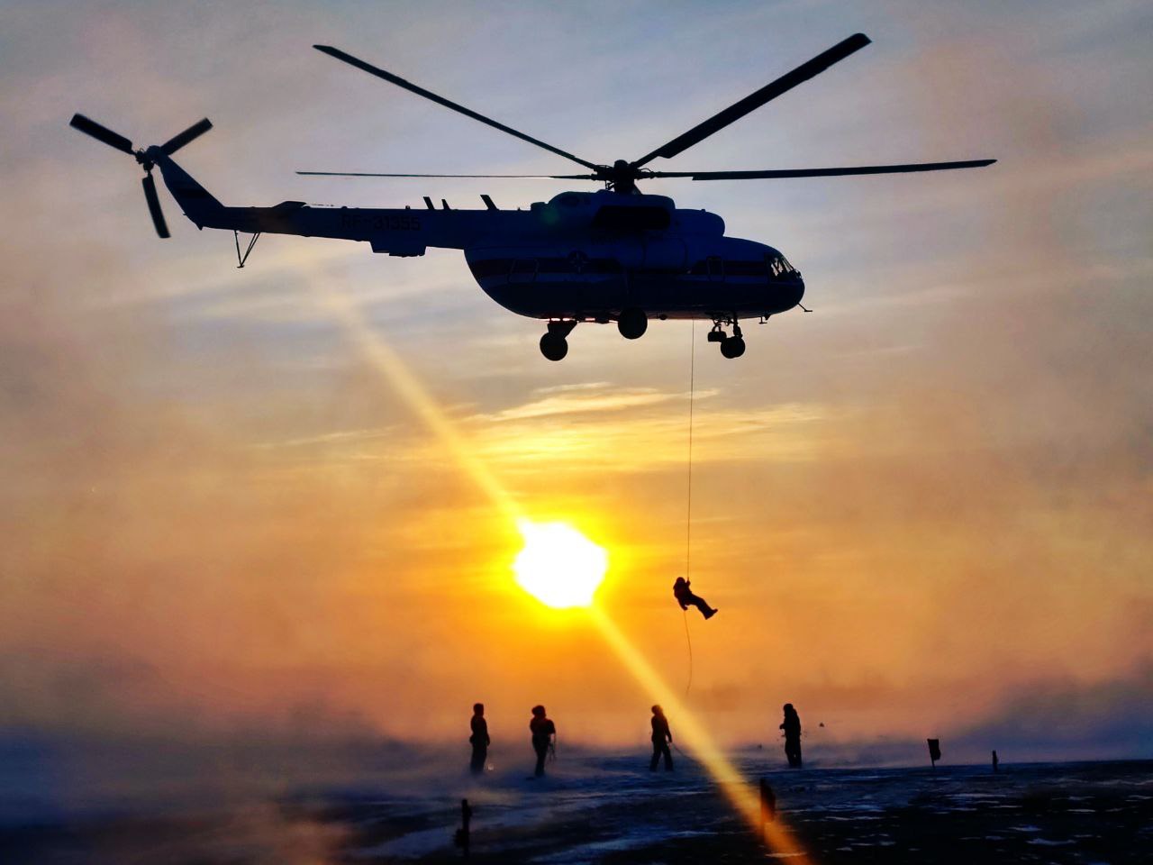 состоялись учебно-тренировочные спуски спасателей Службы спасения с вертолета.