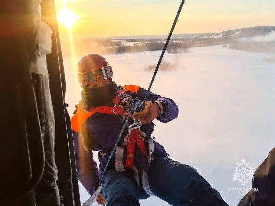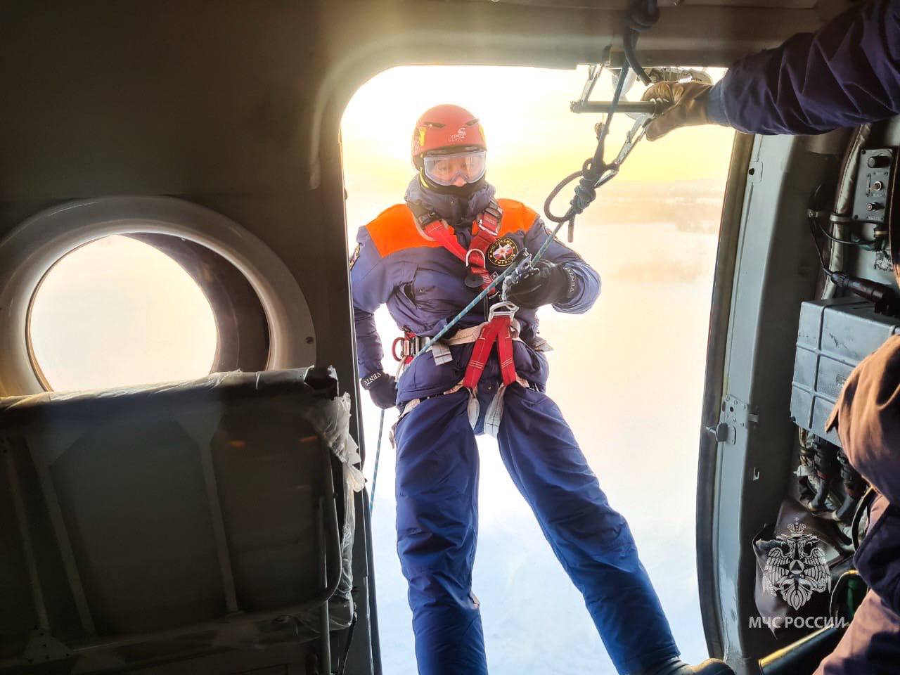 Учения прошли в режиме, максимально приближенном к реальному: спуски отрабатывали на ограниченную площадку, что требует особой концентрации и слаженности спасателей и пилотов задача не из простых в условиях Крайнего Севера.