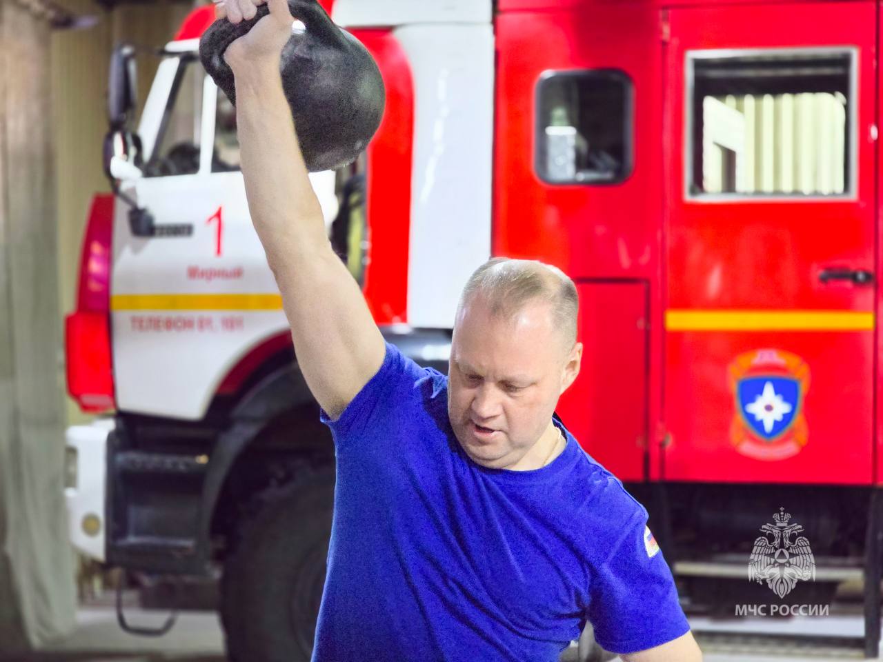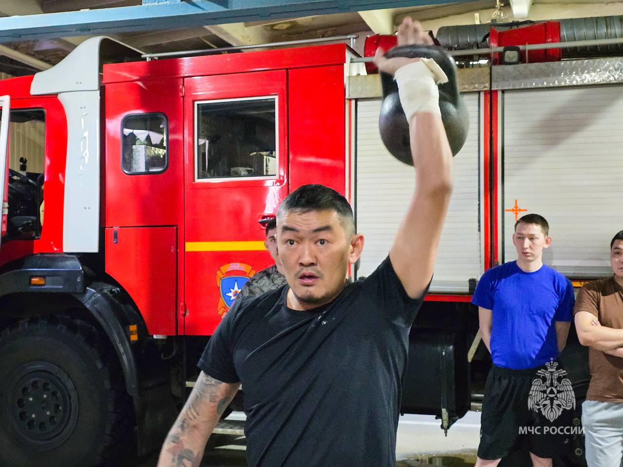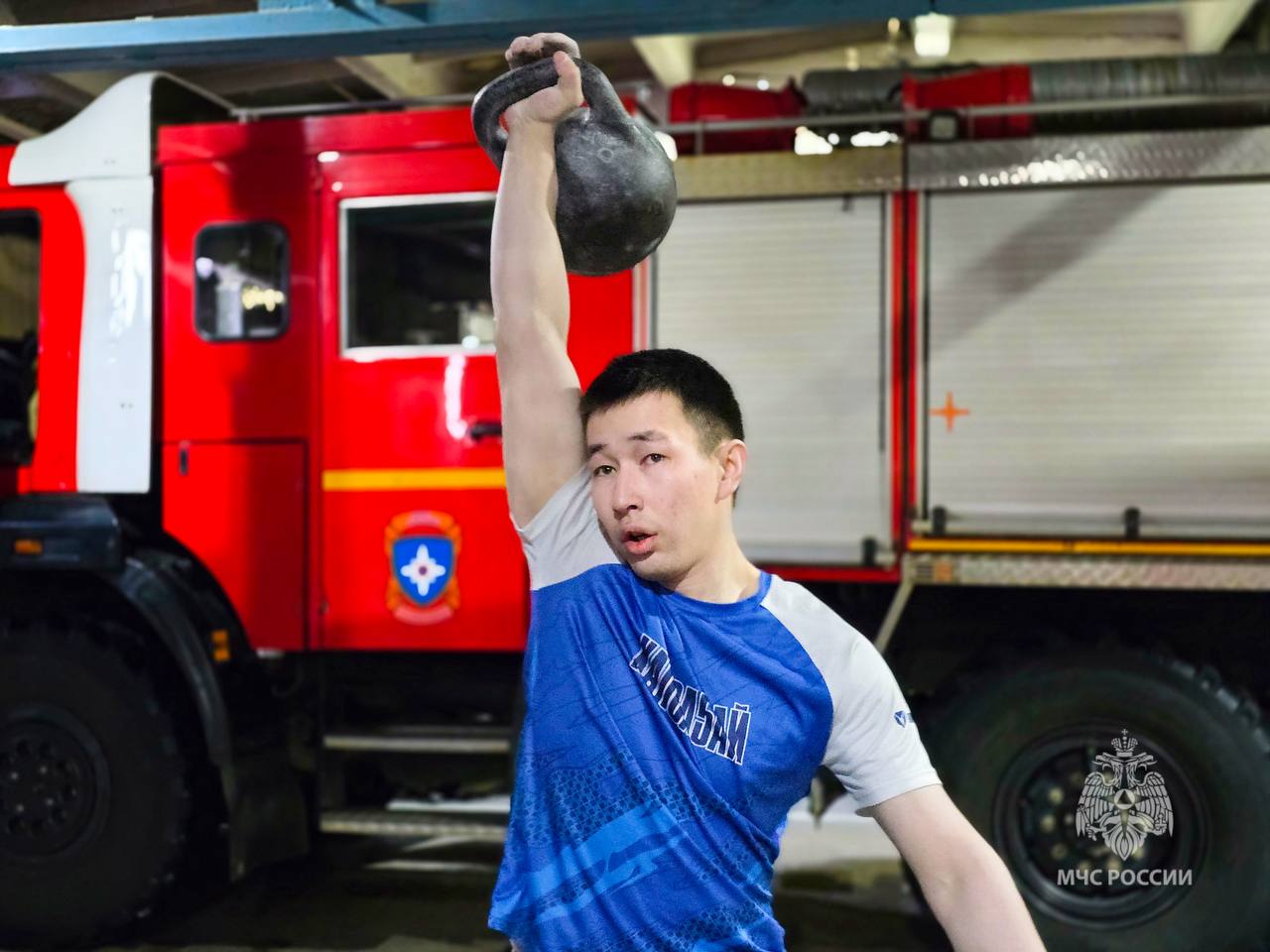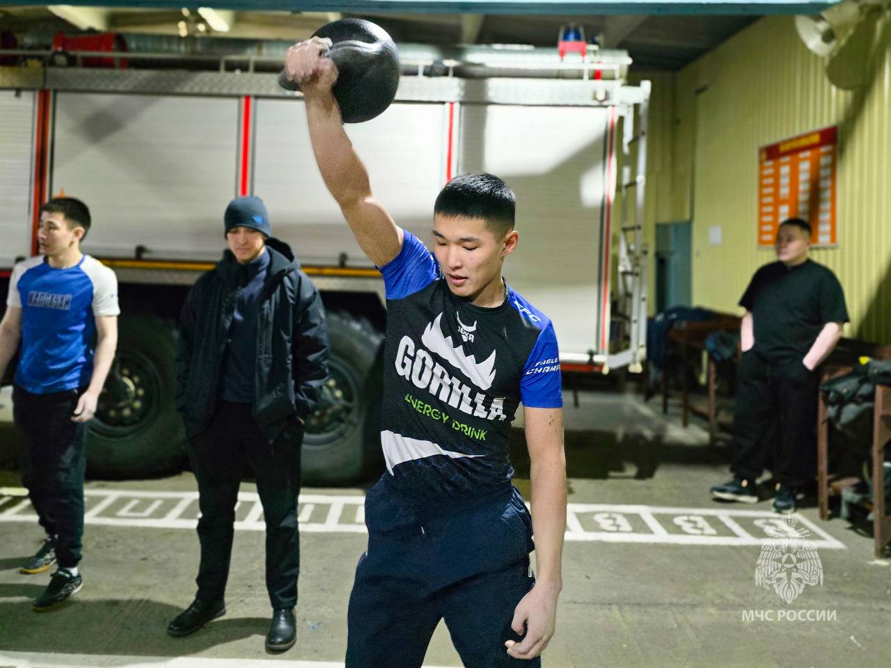 • До 83 кг: старший пожарный Байыр-оол Айдын-белек (3 караул 1 ПСЧ) — 146 подъемов 16-кг гири.