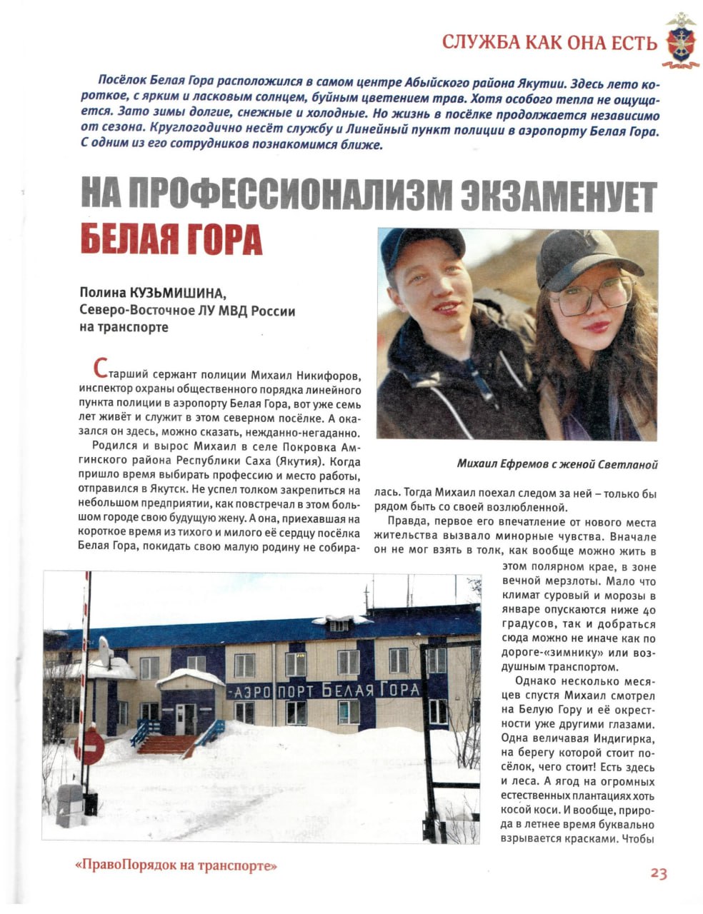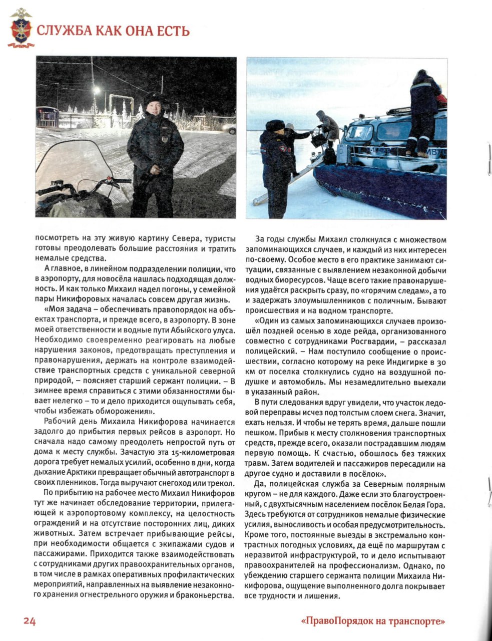 Как служить в экстремальных условиях Якутии? Читайте в статье Полины КУЗЬМИШИНОЙ, Северо-Восточное ЛУ МВД России на транспорте, в выпуске журнала "ПравоПорядок на транспорте".