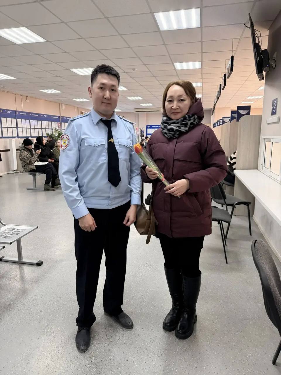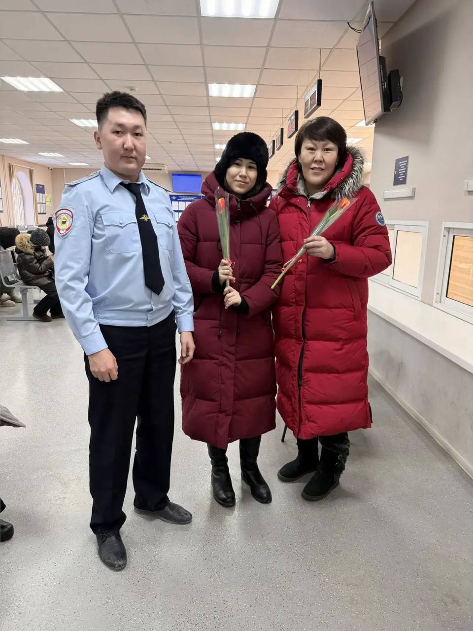 В канун Международного женского дня сотрудники Центра госуслуг МВД Якутии встретили посетительниц с цветами