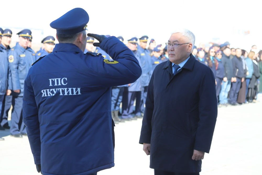 Сегодня, 24 апреля личный состав Службы спасения Якутии, Государственной противопожарной службы Якутии и работники Министерства по делам гражданской обороны и обеспечению безопасности жизнедеятельности населения РС(Я) собрались на площади рядом с музеем «Россия – моя история» в честь празднования Дня Республики.