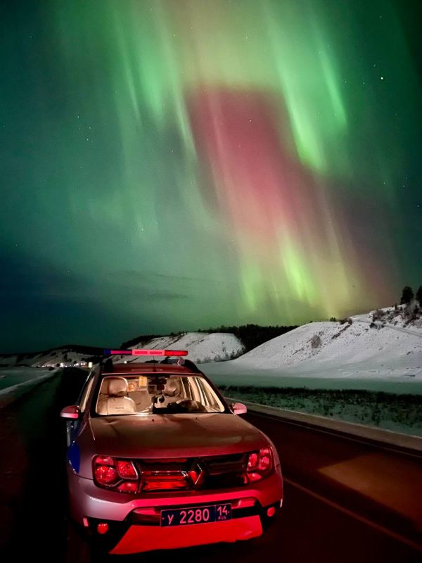 Сотрудники Госавтоинспекции во время несения службы запечатлели редкое и прекрасное природное явление – северное сияниеГосавтоинспекция России в МАХ