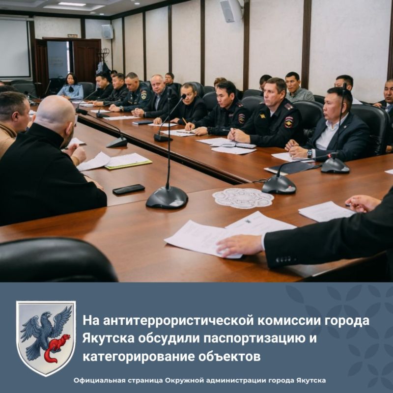 Провели плановое заседание городской антитеррористической комиссии (АТК).Основной темой обсуждения стали паспортизация и категорирование объектов, расположенных на территории Якутска – комплекс мер, направленных на оценку уязвимости городских объектов...
