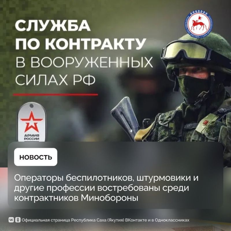 Об этом сообщили в Пункте отбора граждан на военную службу в Якутске.По информации Пункта, наиболее востребованными среди контрактников сегодня являются операторы беспилотных летательных аппаратов, штурмовики...