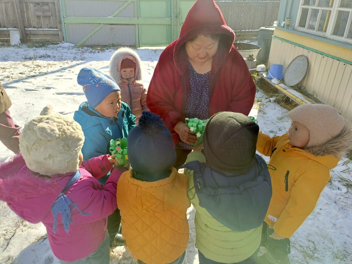 Малыши из детского сада «Кэскил» (с. Хоро, Верхневилюйский улус) собственноручно приготовили салаты и подарили их своему любимому воспитателю-ветерану Тамаре Елисеевне