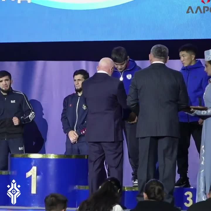Церемония награждения победителя и призеров в в/к до 57 кг на турнире во Владикавказе