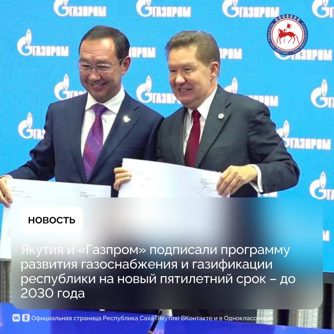 9 октября 2025 года в Санкт-Петербурге в рамках XIV Петербургского международного газового форума подписана программа развития газоснабжения и газификации Республики Саха (Якутия) на новый пятилетний срок – 2026-2030 годы.