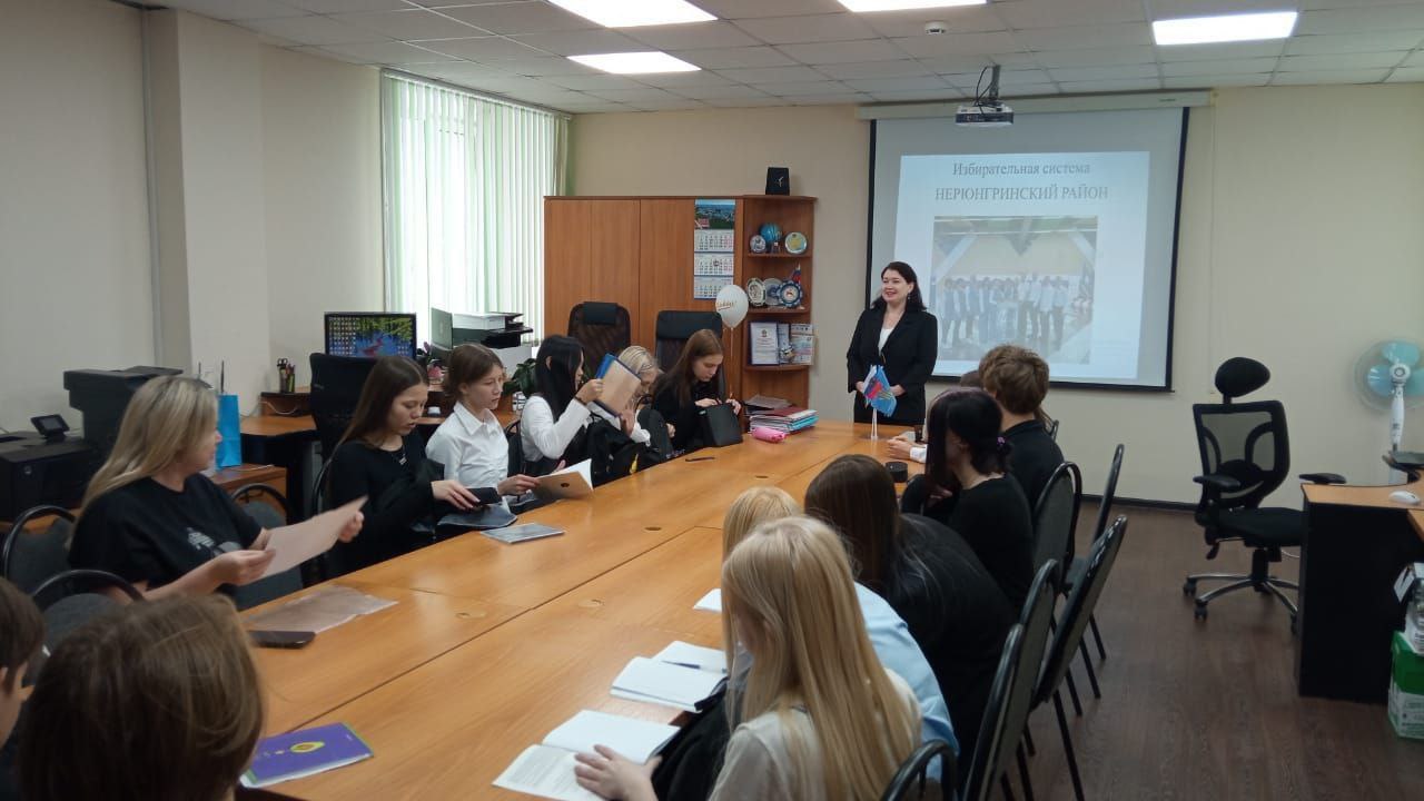 13 октября в Нерюнгринской ТИК прошла экскурсия для учащихся 10, 11 классов СОШ № 1 г. Нерюнгри. В целях правового просвещения будущих избирателей, привлечения молодежи к участию в общественно-политической жизни района, подготовки к участию в ВОШ «Софиум», работники аппарата провели урок об избирательном праве и процессе.