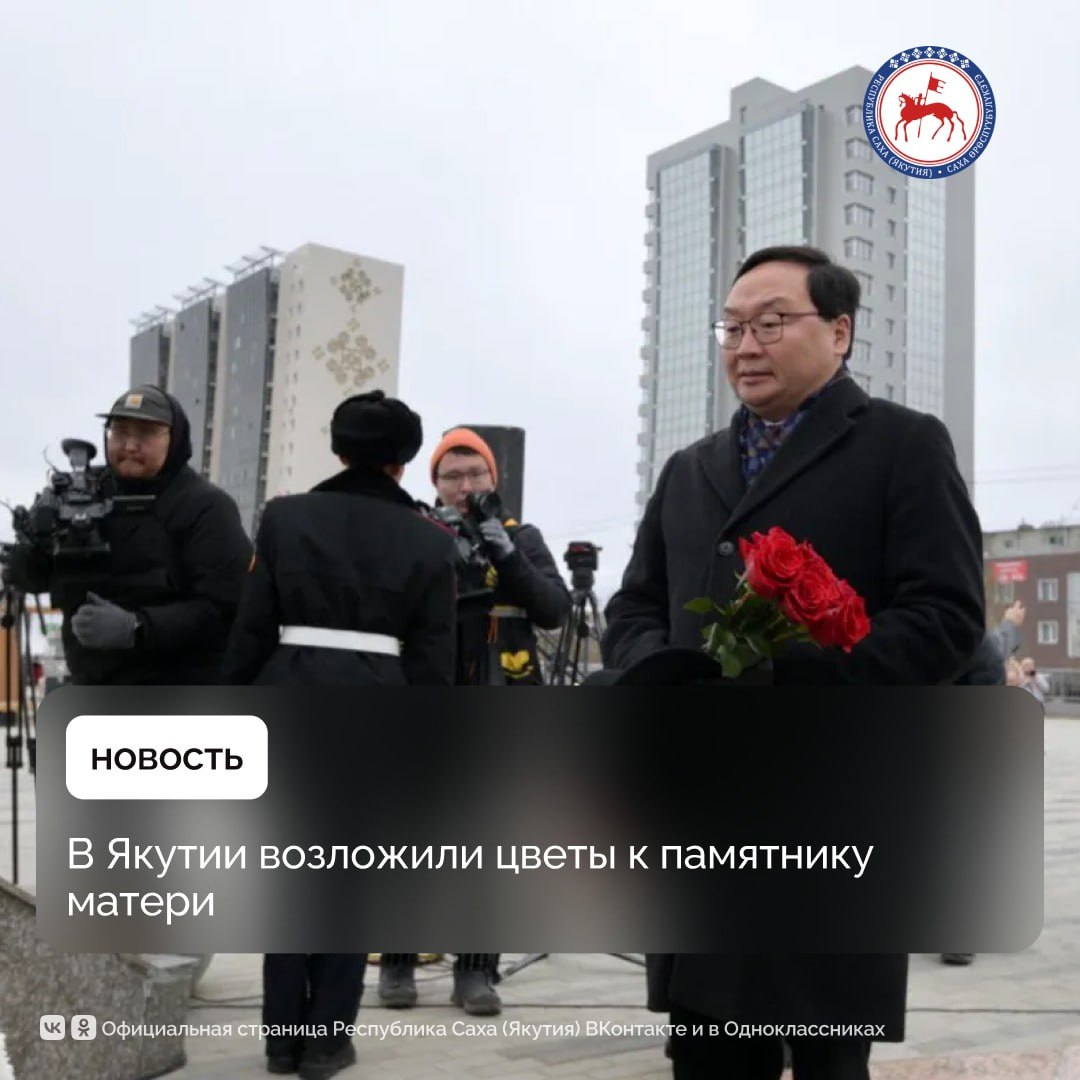 В Якутске состоялась торжественная церемония возложения цветов к памятнику матери, посвящённая Дню матери в республике. В год 80-летия Победы в Великой Отечественной войне жители республики с особой благодарностью и уважением вспомнили матерей Якутии, проводивших своих сыновей на защиту Родины.