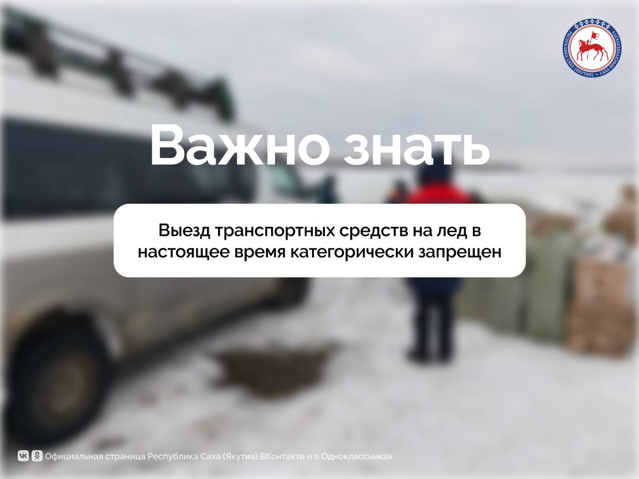В данный момент в Якутии ледовый покров рек и водоемов ещё неоднороден и местами хрупок, поэтому выход, а тем более выезд транспортных средств на него в настоящее время категорически запрещён, сообщили в Министерстве по делам гражданской обороны и обеспечению безопасности жизнедеятельности населения республики.