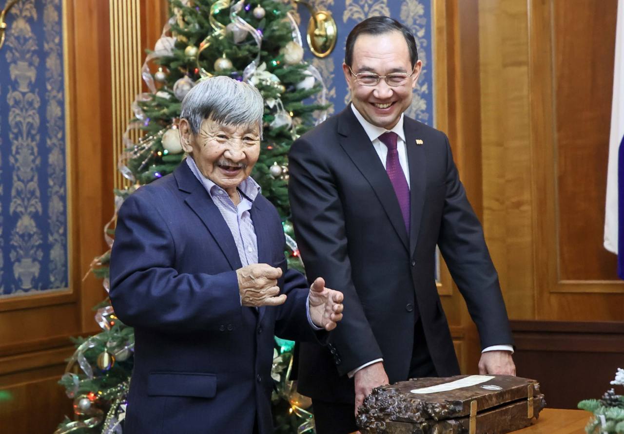Кнд Борис Федорович! сс да уун сылларга биигини кытта бииргэ сырыт. Ылсыбыт лэ барыта т тмктээх буоллун. Эйиэхэ уонна тапталлаах кэргээр Федора Борисовнаа, чугас дьоор дьолу-соргуну, уйгуну-быйаы баарабын! рэ-кт, айа-тута тур, улуу убайбыт Мандар Уус!