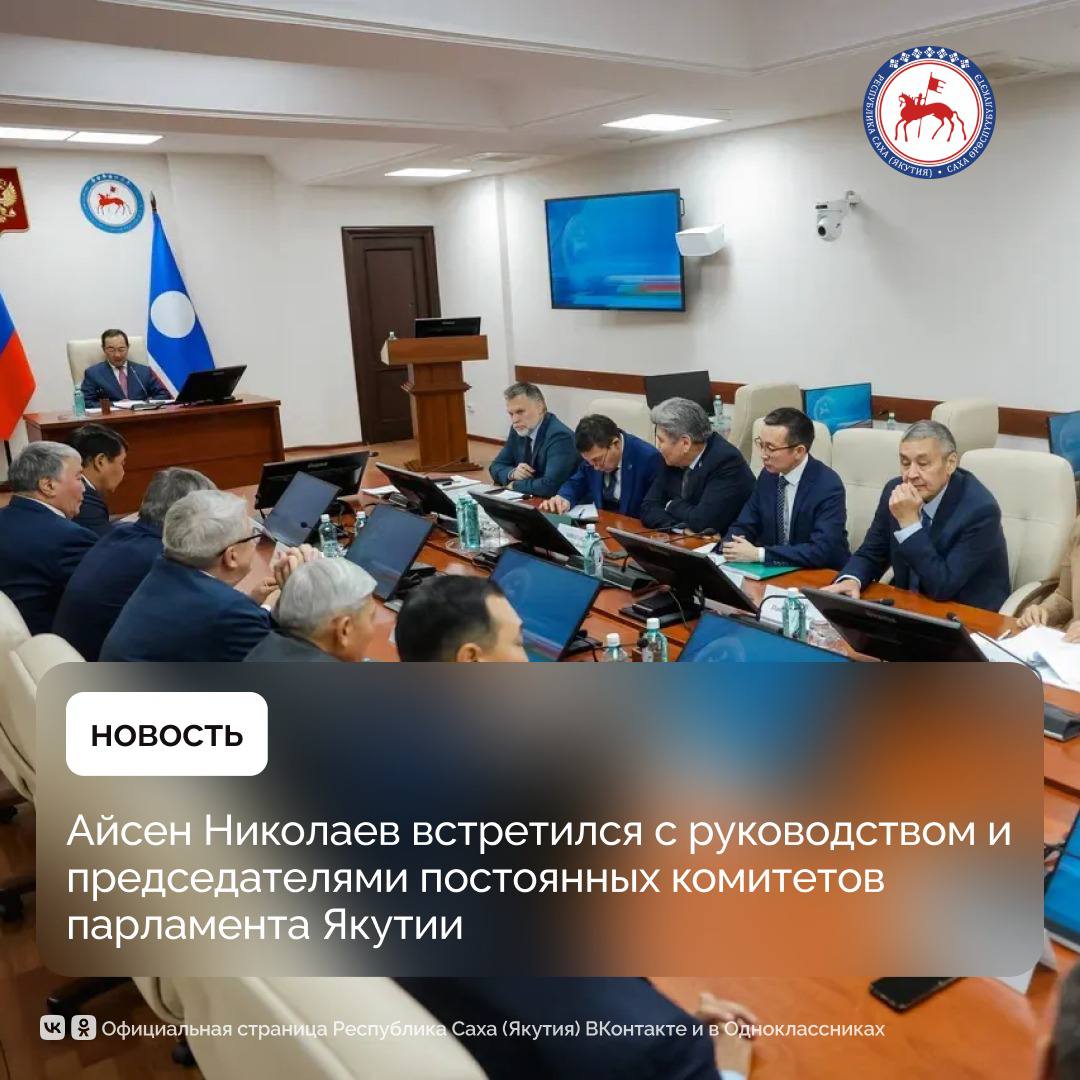 В рамках подготовки к пленарному заседанию Государственного Собрания (Ил Тумэн) Глава Якутии Айсен Николаев 20 октября провел рабочую встречу с руководством и председателями постоянных комитетов парламента республики.