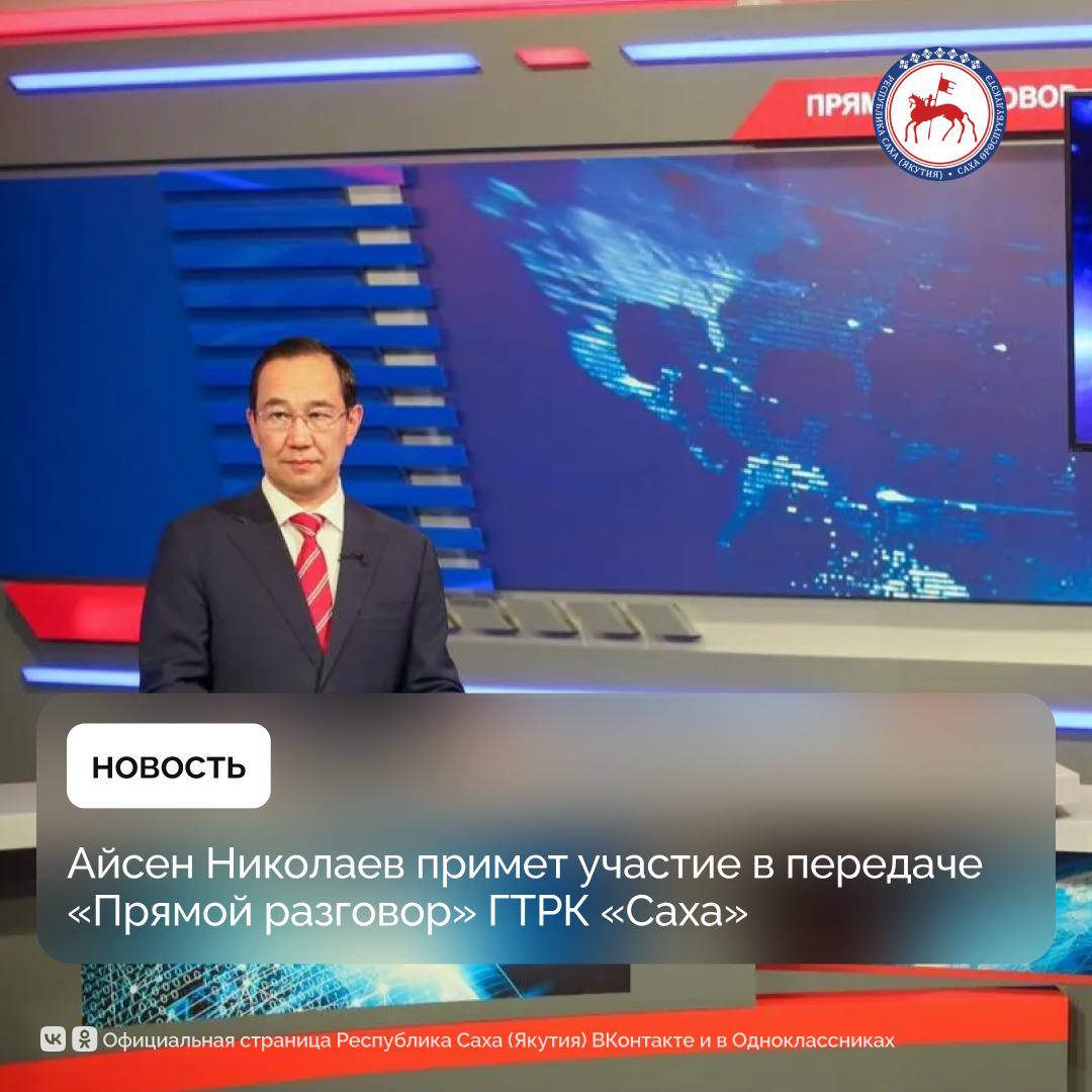 Сегодня, 21 октября, в 13:00 по якутскому времени Глава Якутии Айсен Николаев в прямом эфире передачи «Прямой разговор» ГТРК «Саха» на канале «Россия 24» ответит на вопросы жителей республики.