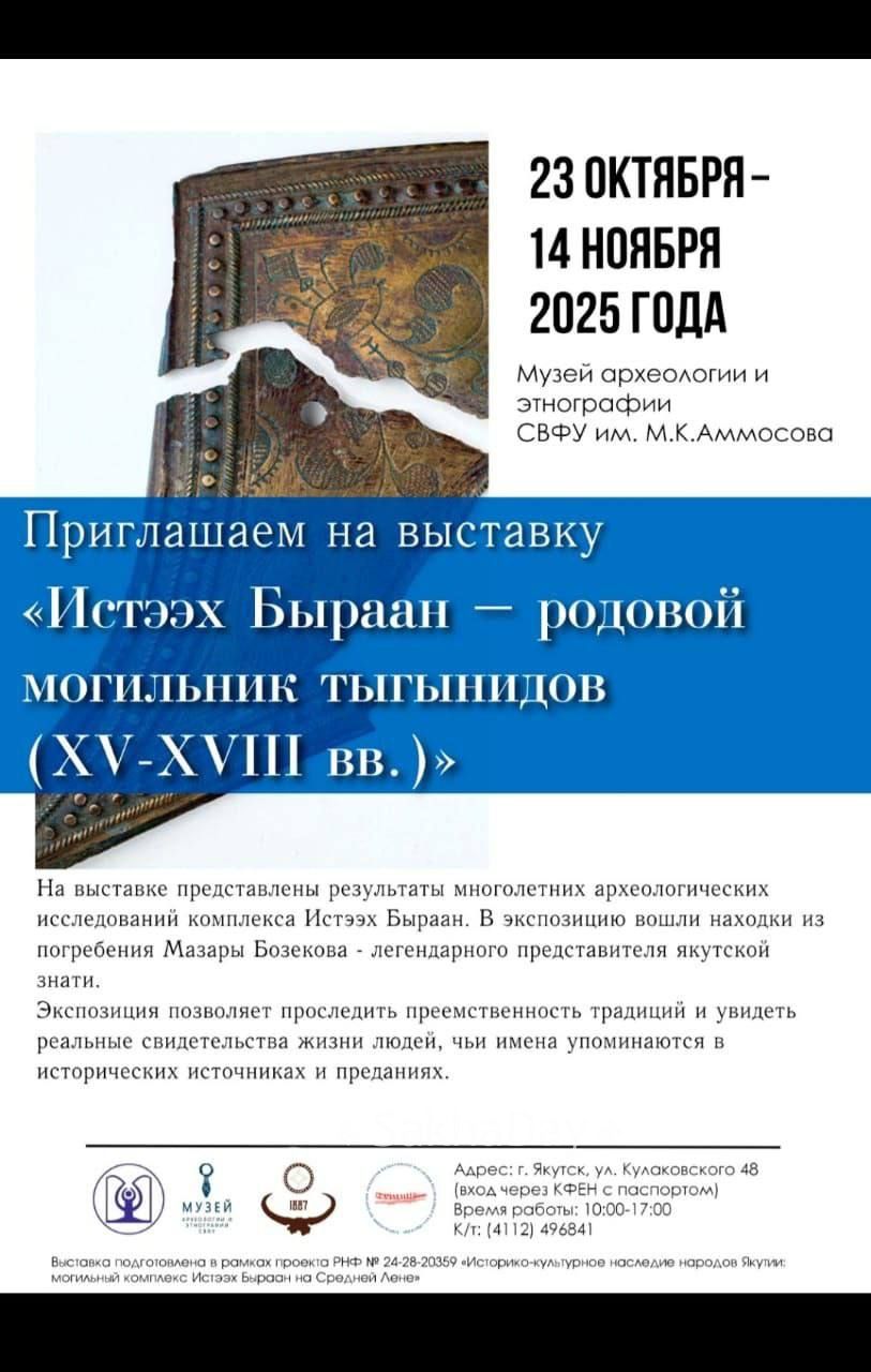 Вчера в Музее археологии и этнографии СВФУ им М.К.Аммосова открылась уникальная выставка "Истээх Быраан-родовой могильник тыгынидов (ХV-XVIII вв.)".