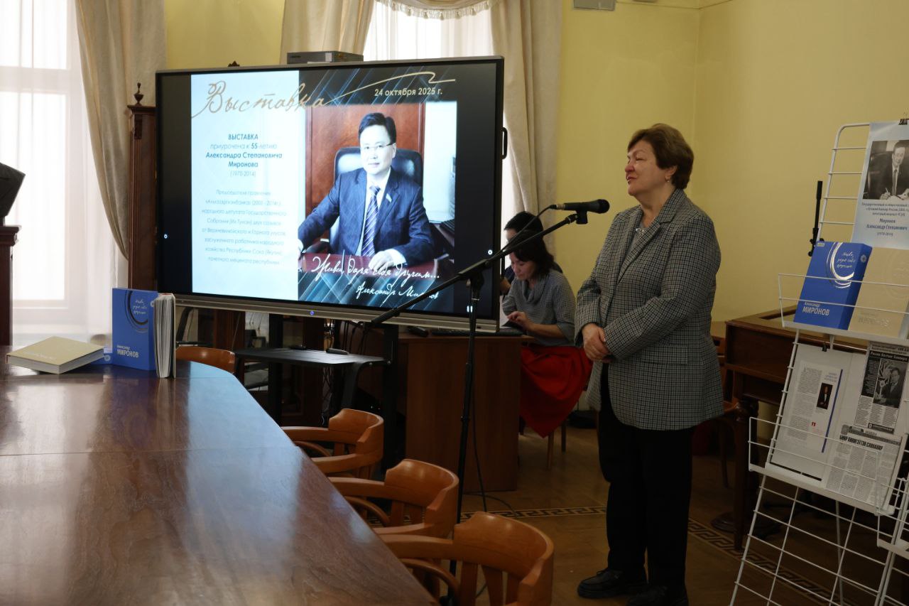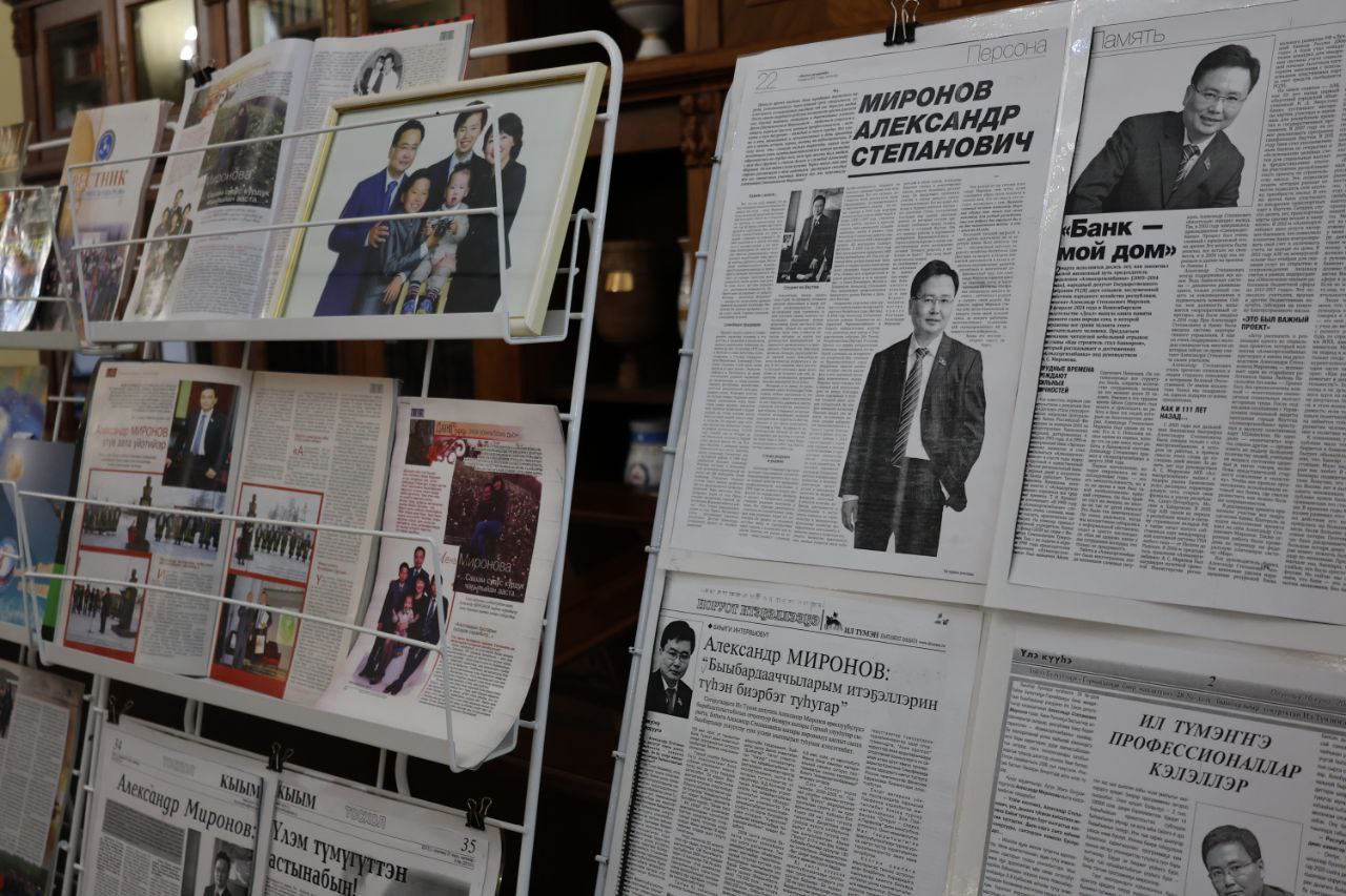 В историческом зале Национальной библиотеки открылась выставка, посвящённая 55-летию Александра Степановича Миронова — Председателя Правления нашего банка в 2005–2014гг. и народного депутата от Верхневилюйского и Горного улусов.
