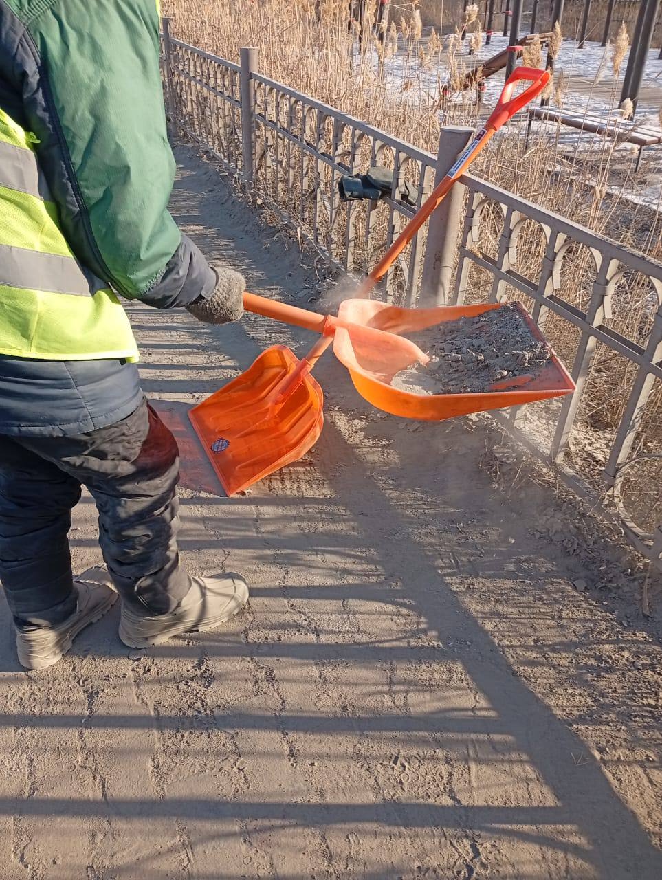 Работа подрядчика по уборке тротуаров на территории Автодорожного округа.