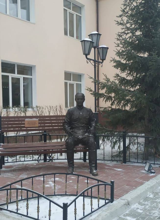 Бу — скульптор Галим Долмогомбетов «Аа дойду сэриитин I степенэ», «Хотугу сулус», «Норуоттар доордоуулара» орденнар кавалера, «Хорсунун иин», «Праганы босхолооун иин», «Германияны кыайыы иин» бойобуой мэтээллэр хааайына, Саха сиригэр театральнай искусство сайдыытыгар улахан кылааттаах айар интеллигенция чаылхай бэрэстэбиитэллэриттэн биирдэстэрэ Валентин Дмитриевич Антонов мсснн йэтиппит пааматынньыга.