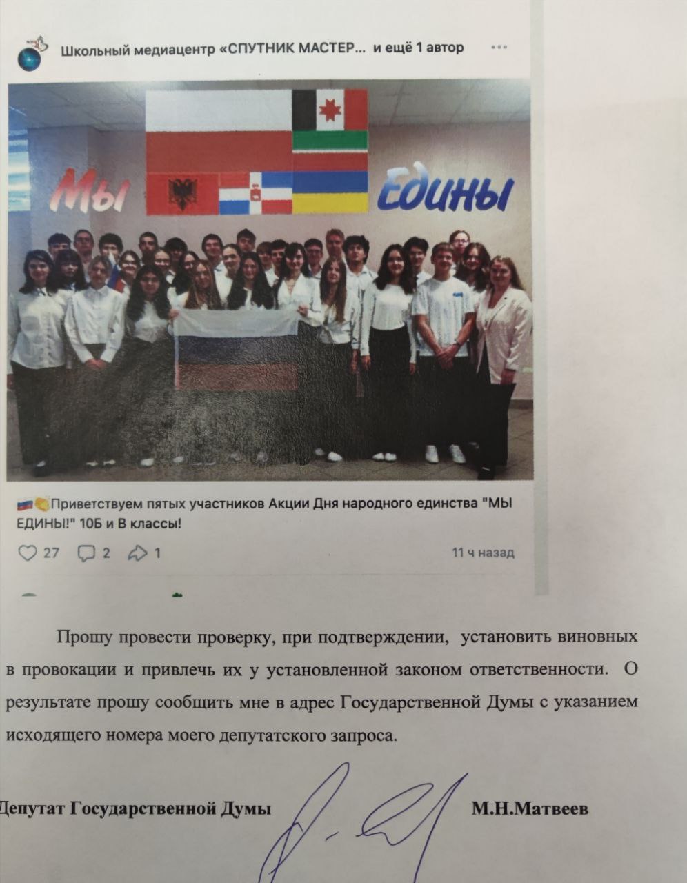 Даже если фото чей-то злобный монтаж (направил обращение в прокуратуру о проверке), то посмотрев страничку пермской школы и их проект к дню народного единства , что я вижу? Русских ратников? Нет- всё те же переодевания в казахов, узбеков, азербайджанцев.