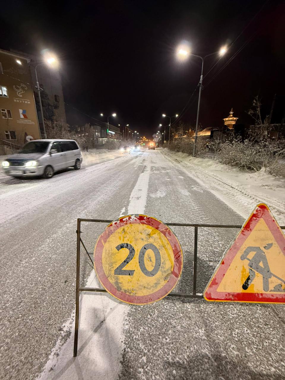 АО "Якутдорстрой" ведет работы по устранению образовавшейся наледи в результате разлива сточных вод по улице Ойунского.