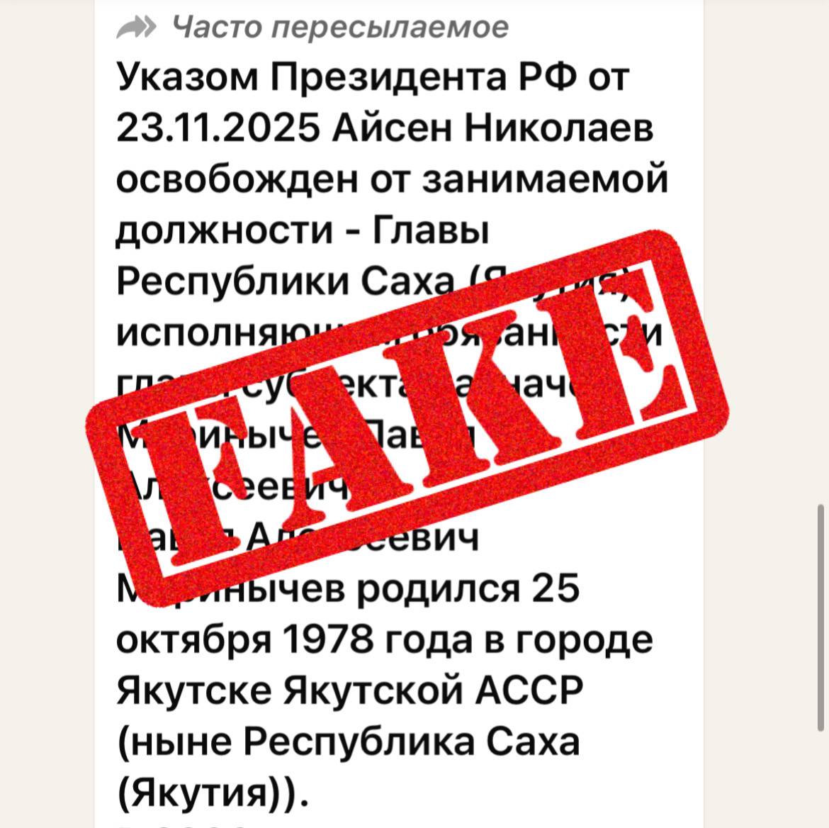 Информация о якобы состоявшейся отставке главы республики в соцсетях Якутии не соответствует действительности.