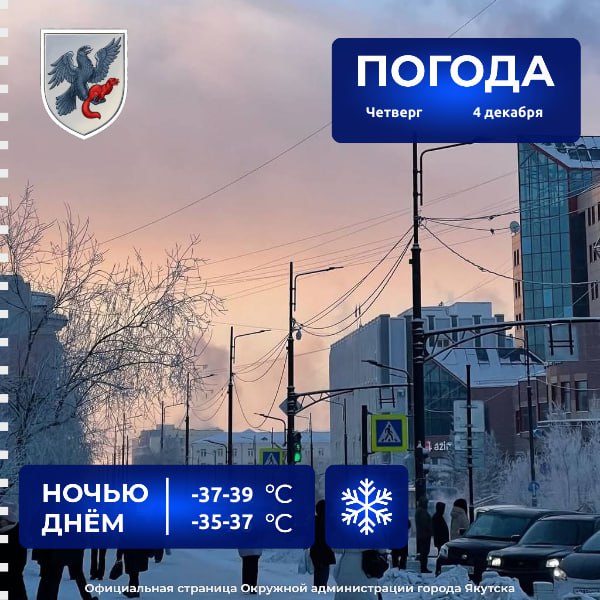 Температура воздуха ночью -37-39°, днём -35-37°.