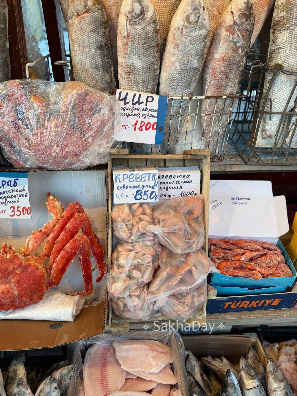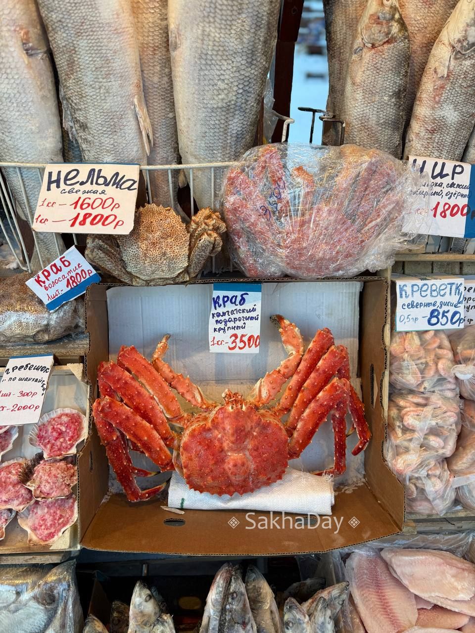 Сколько стоят морские гады в Якутске? 1 гребешок 300 руб., осьминог 3 тыс., краб 3,5 тыс. #дляsakhaday