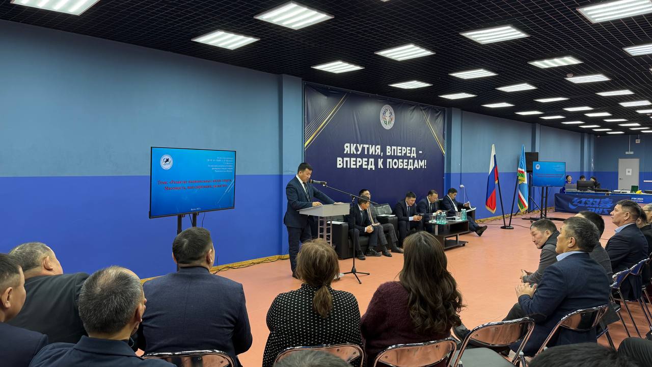 На итоговом совещании работников физической культуры и спорта Республики Саха (Якутия) директор Республиканского центра национальных видов спорта им. В. Манчаары Геннадий Васильев выступил с докладом на тему «Развитие национальных видов спорта. Массовость, популяризация, развитие».