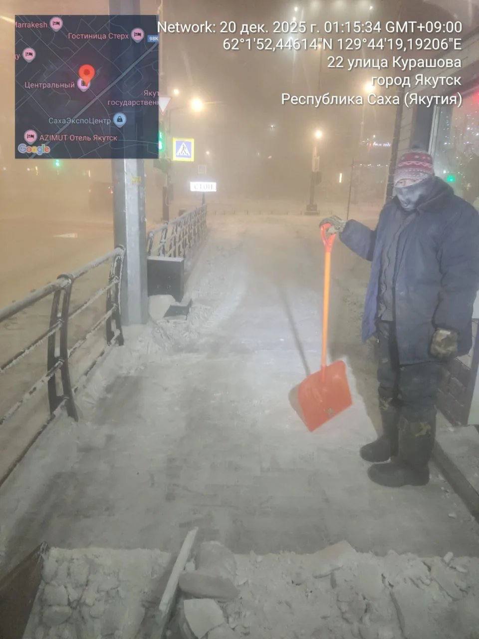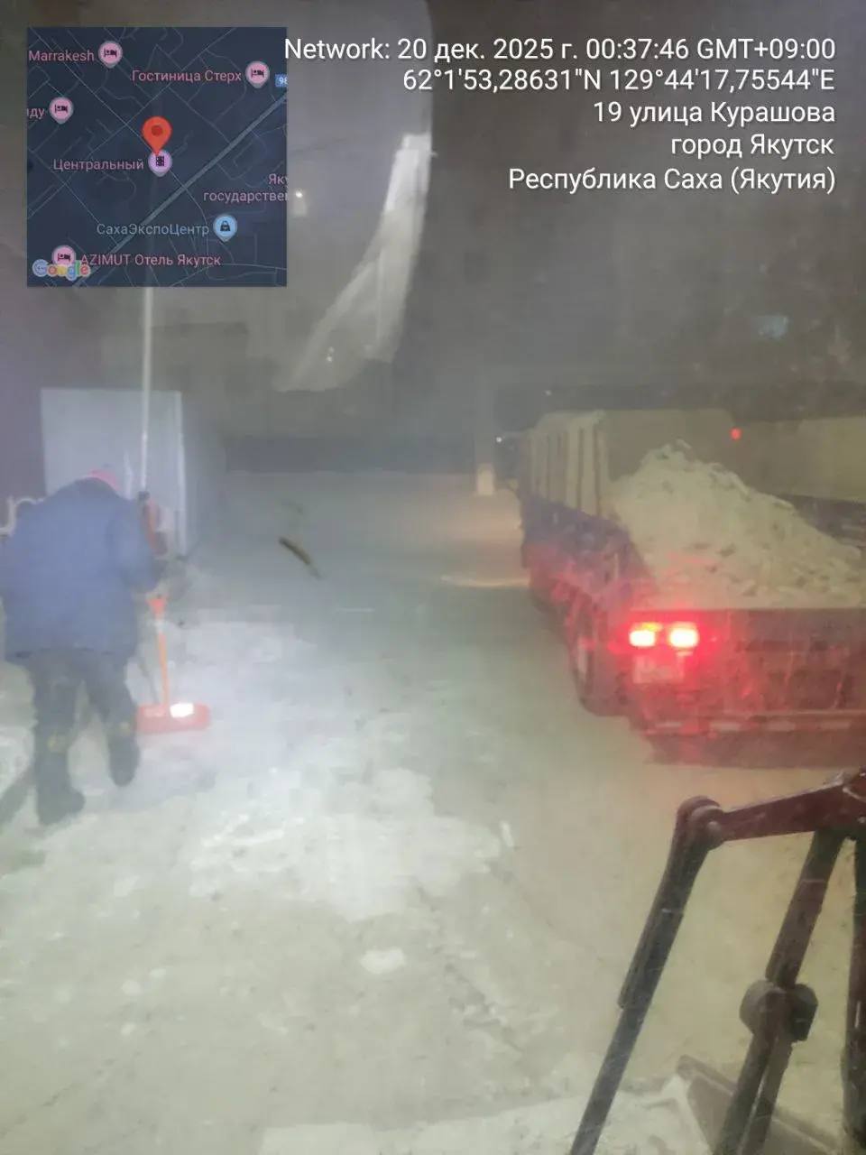 Очистка и вывоз снега с тротуаров подрядчиком на территории Центрального округа.