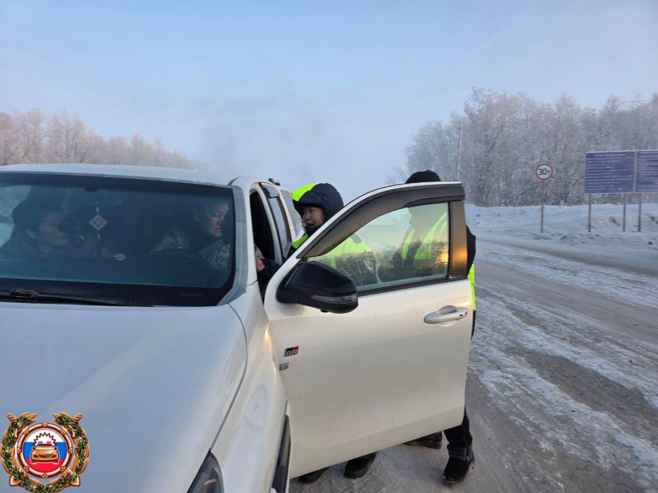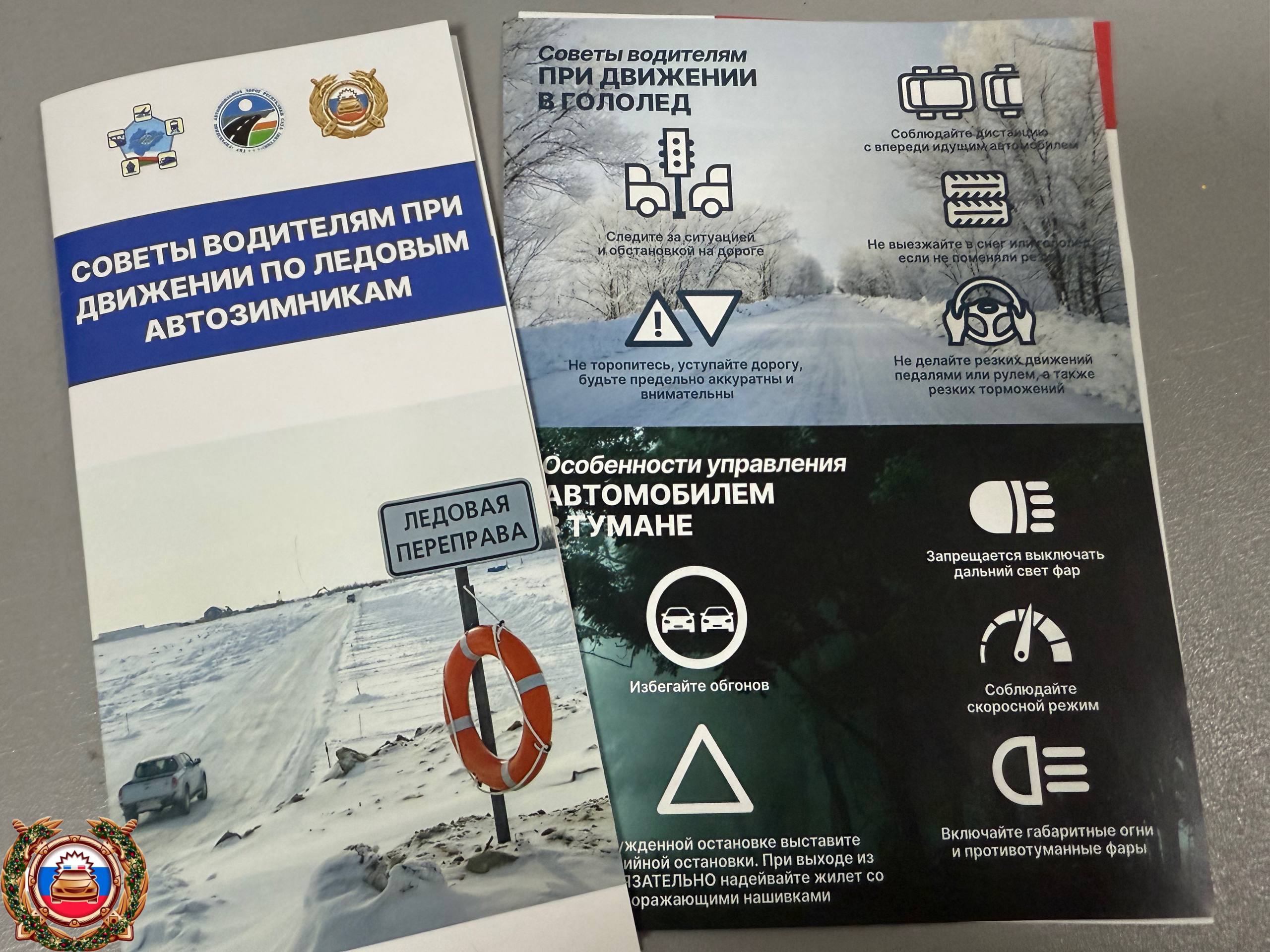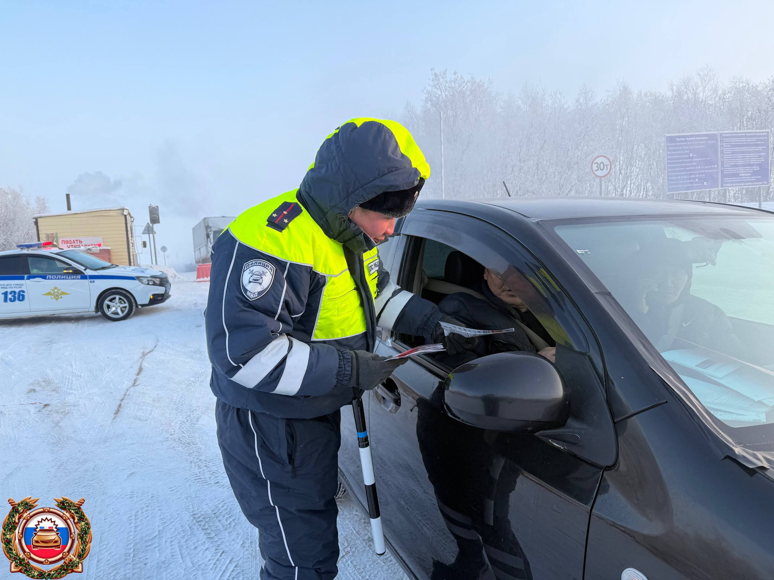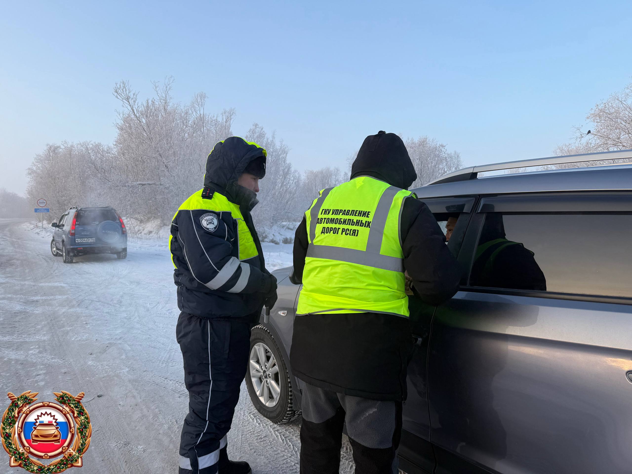 Сотрудники Госавтоинспекции совместно с ГКУ Управление автомобильных дорог РС (Я) провели профилактическую акцию "Осторожно, гололед!" на ледовой переправе через реку Лену по направлению «Хатассы - Павловск».