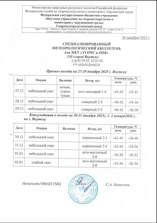 2 января морозы ослабнут ещё больше: ночью до 3436, днём — 2830 градусов. В праздничные дни также прогнозируется небольшой снег и юго-восточный ветер скоростью 3–8 м/с.