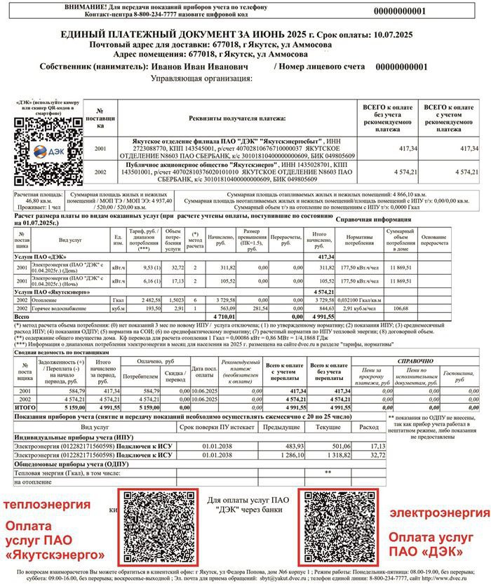Как уже сообщали в ПАО «ДЭК», в квитанциях нового образца начисления разделены по услугам двух поставщиков - ПАО «ДЭК» (оплата за электроснабжение с 01.04.2025) и ПАО «Якутскэнерго» (оплата за электроэнергию, поставленную до 01.04.2025, тепло и горячее водоснабжение). При использовании старых шаблонов оплата поступит только за услуги ПАО «Якутскэнерго» и может возникнуть задолженность за электроэнергию перед ПАО «ДЭК».