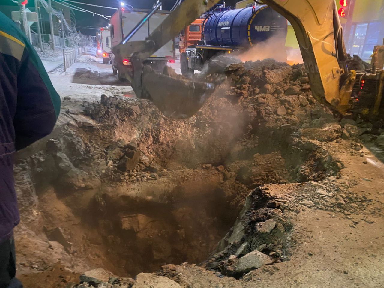 За ходом восстановительных работ на месте аварии контролируют: глава города Евгений Григорьев, министр ЖКХ Вячеслав Емельянов и министр ГОиОБЖН Дмитрий Лепчиков.