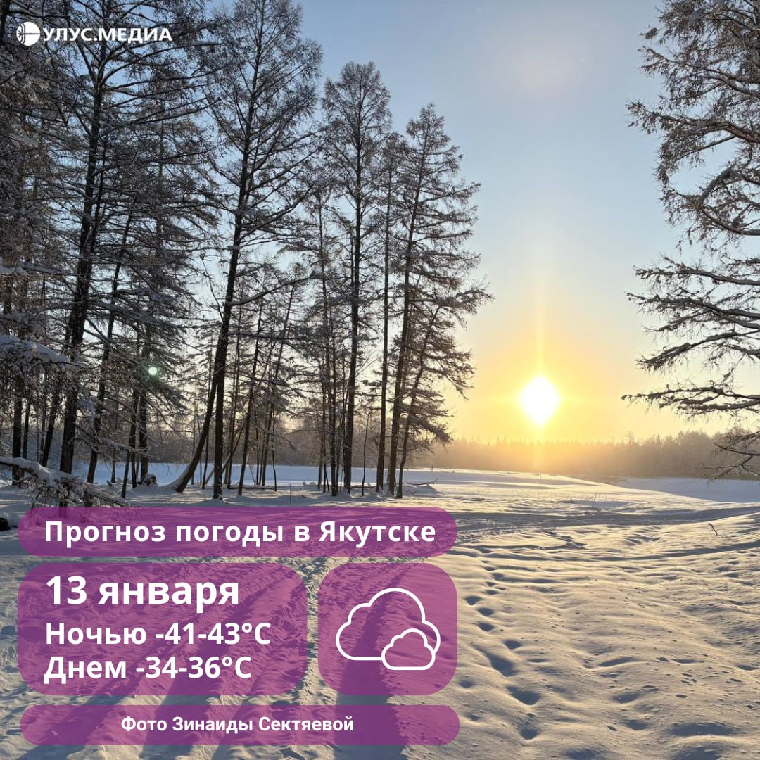 В Якутске небольшой снег, ночью туман, ветер северо-западный 2-7 м/с.