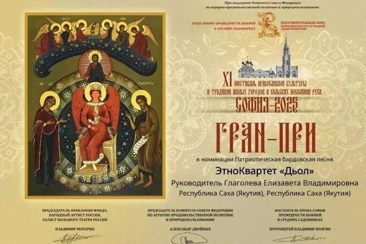 Этноквартет «Дьол» из Якутска одержал блестящую победу на крупном всероссийском фестивале «София-2025». Коллектив удостоился высшей награды - гран-при в номинации «Патриотическая бардовская песня», обойдя тысячи конкурентов.