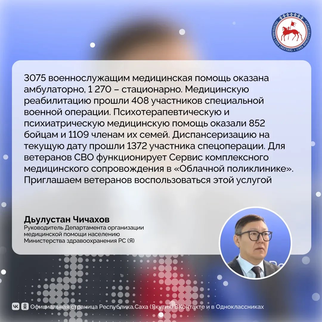 В Якутии медицинская помощь оказана 4 341 участнику специальной военной операции.