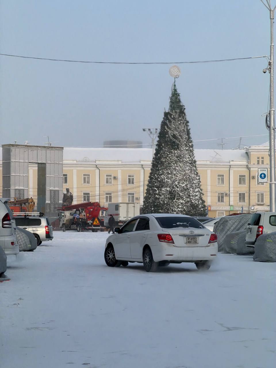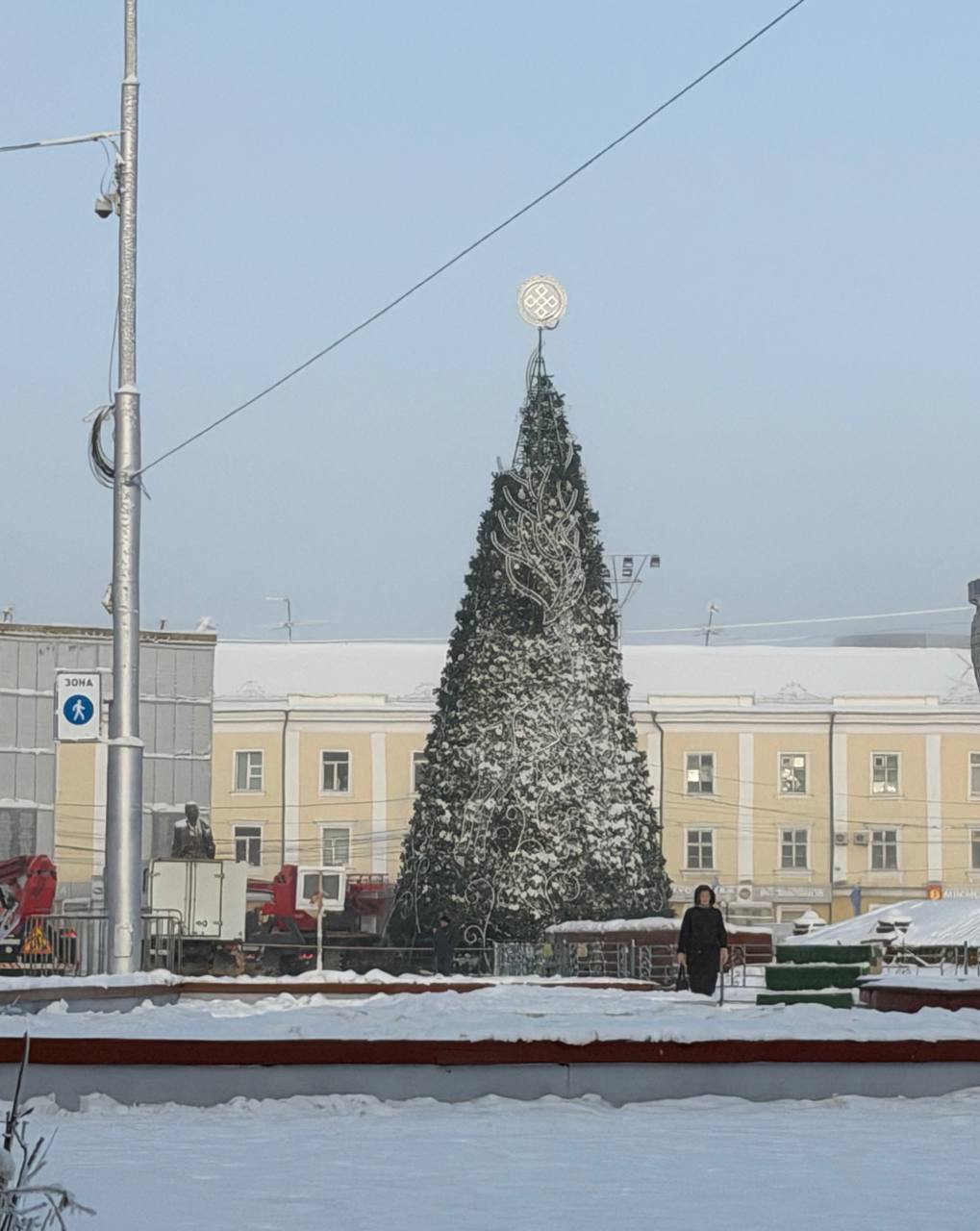 Фотофакт: убирают новогоднюю ель на площади Орджоникидзе