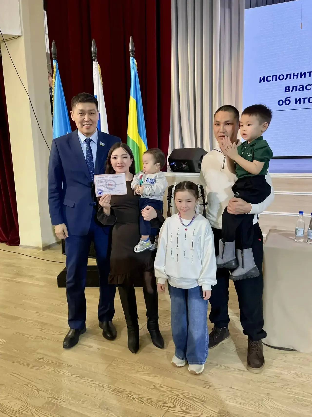 С особой радостью отмечу, что в Вилюйском улусе много многодетных и молодых семей. На итоговом отчете я вручил двум молодым семьям свидетельства на получение социальной выплаты для приобретения жилого помещения или строительства дома.