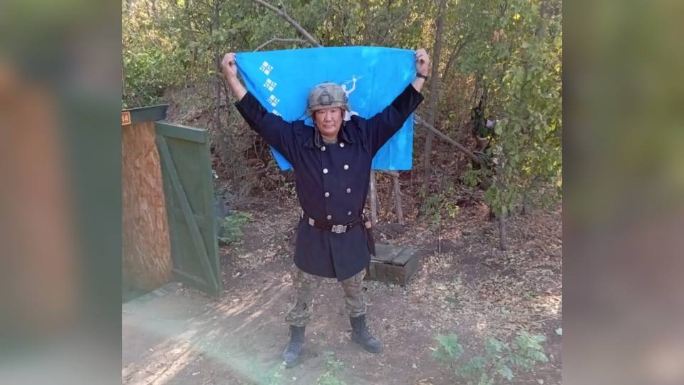 Идэмэрдээх иирсээн иэнигийэ турар сиригэр саха боотура кыыннаах быаын иилинэн, трт тааын кэтэн уонна трбт рспблкэтин былааын р тутан, бойобуой сорудахтары толоро барар.