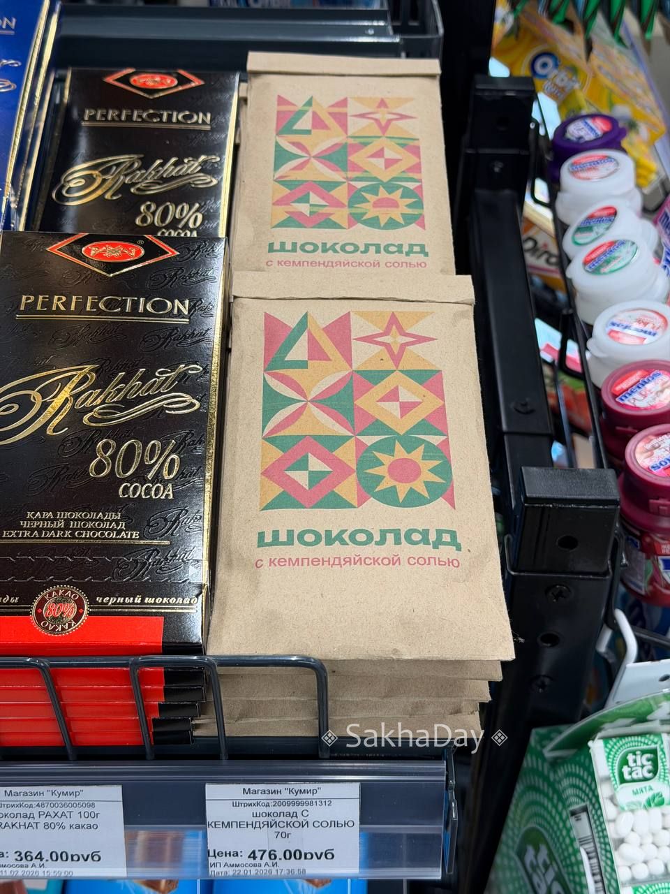 #ценывякутске Якутский шоколад с кемпендяйской солью за 476. Для сравнения - рядом 80% с большей граммовкой дешевле на 100 рублей. #дляsakhaday