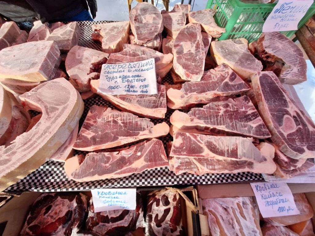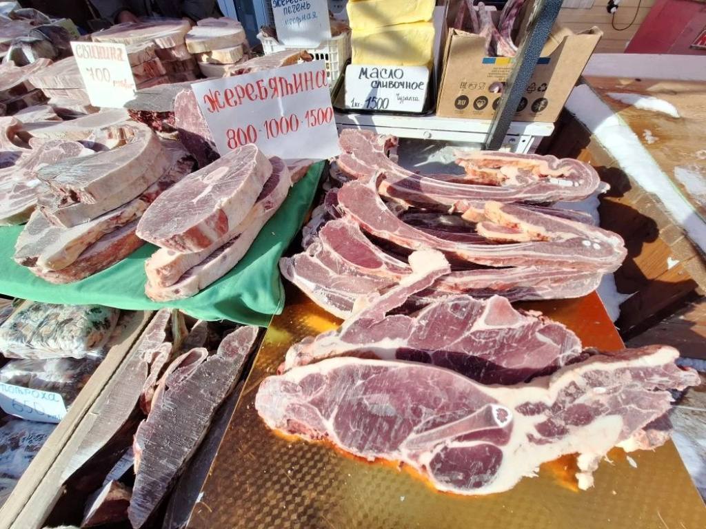 Ас-л эргийэр киинигэр, Дьокуускай “Сайсары” бааынай ырыынагар, куорат ыала атыылаан сайыыга хааанар то аа – эт уонна балык кн быыллыбыт сыанатынан атыылана турар.